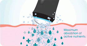 Současně se do pokožky zapracovávají účinné látky (např. kyselina hyaluronová, vitamín C, peptidy).
